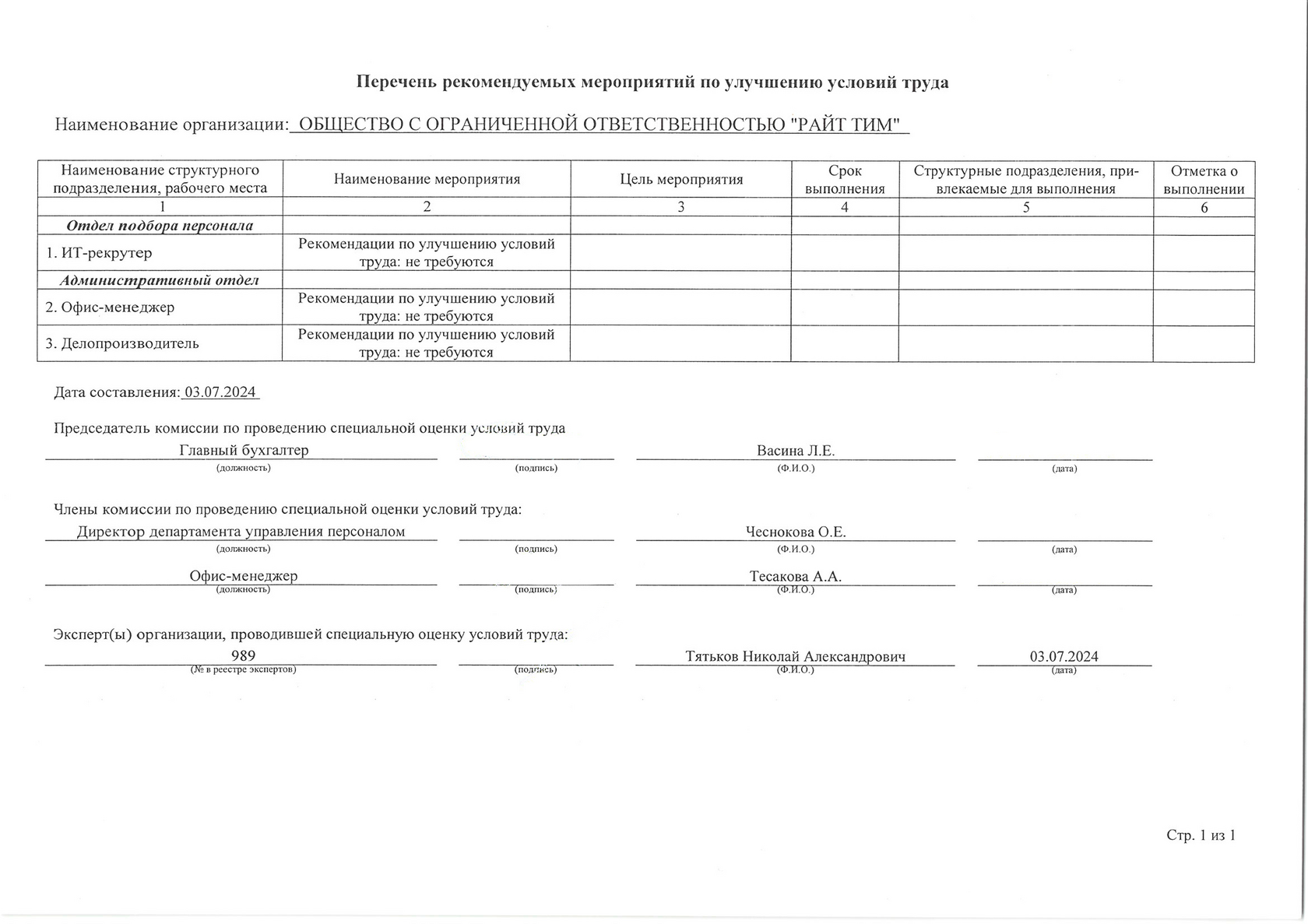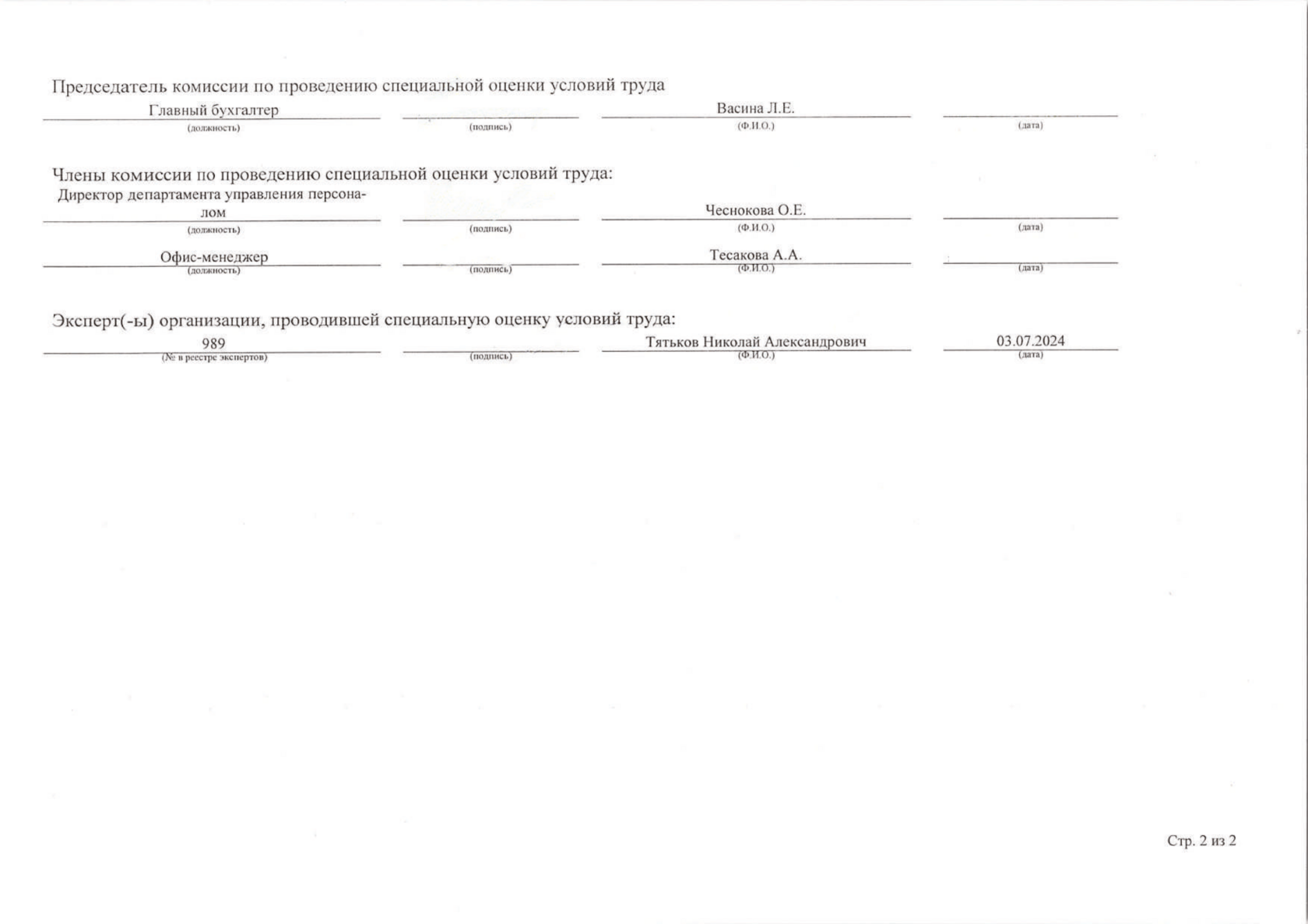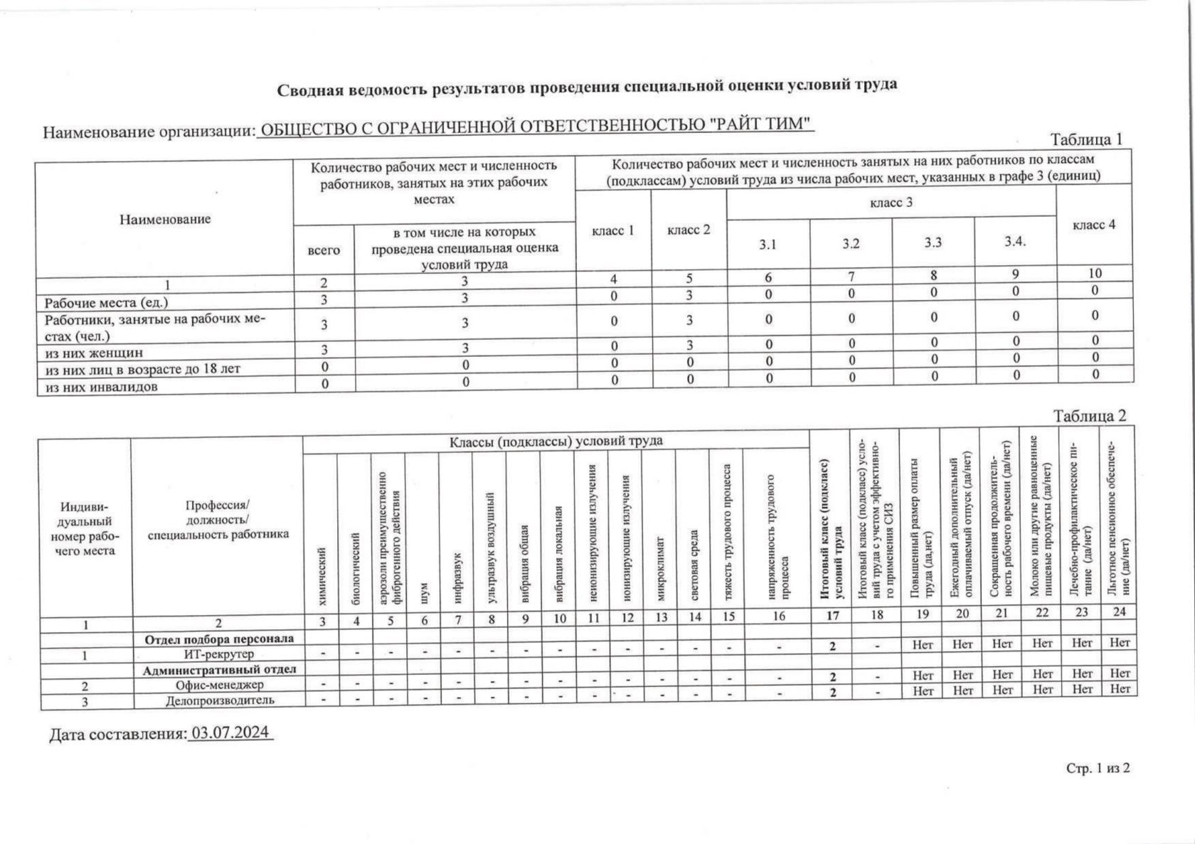 Специальная оценка условий труда